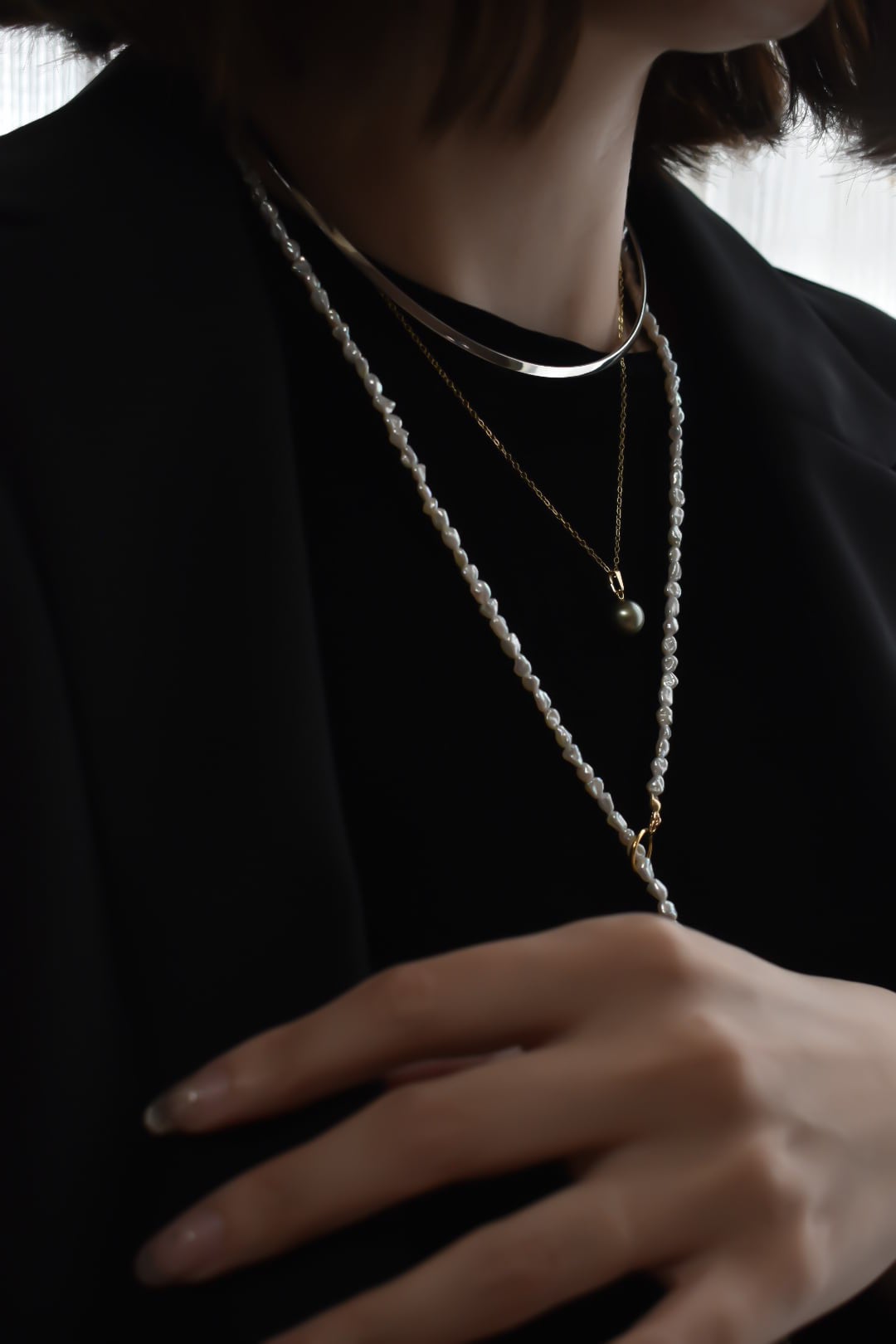 首元に沿うようにフィットするそのラインは